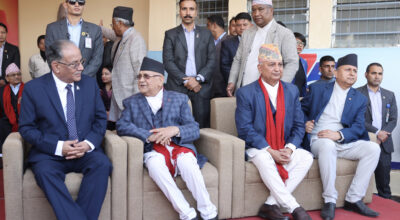 काठमाडौँ, १५ कात्तिक । प्रधानमन्त्री पुष्पकमल दाहाल ‘प्रचण्ड’, नेपाली कांग्रेसका सभापति शेरबहादुर देउवालगायत नेताहरु नेकपा (एमाले) का अध्यक्ष केपी शर्मा ओलीका तर्फबाट नेपालीहरूको चाडपर्वका अवसरमा आज आयोजना गरिएको चियापनमा सहभागी