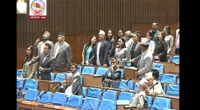 काठमाडौँ, ३१ असार । राष्ट्रिय स्वतन्त्र पार्टी (रास्वपा) को अवरोधका कारण प्रतिनिधिसभा बैठक १५ मिनेटका लागि स्थगित गरिएको छ । “केही नेपाल ऐन संशोधन गर्न बनेको विधेयक, २०८०” लाई बैठकमा