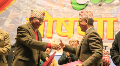 काठमाडौं, १६ पुष । राजेन्द्र लिङ्देन नेतृत्वको राष्ट्रिय प्रजातन्त्र पार्टी (राप्रपा) र कमल थापा नेतृत्वको राप्रपा नेपालबीच बुधबार काठमाडौँमा आयोजित कार्यक्रममा औपचारिक एकता घोषणा गरिएको छ। कार्यक्रममा दुवै नेताले ६