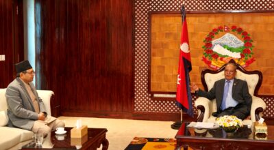 काठमाडौँ, १३ चैत । सङ्घीय संसद्को काम कारबाहीलाई प्रभावकारी बनाउने विषयमा प्रधानमन्त्री पुष्पकमल दाहाल ‘प्रचण्ड’ र सभामुख देवराज घिमिरेबीच छलफल भएको छ । प्रधानमन्त्री निवास बालुवाटारमा आज बिहान भएको छलफलमा