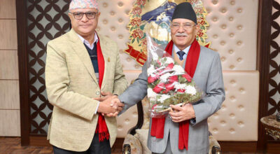 काठमाडौँ, १८ माघ । प्रधानमन्त्री पुष्पकमल दाहाल ‘प्रचण्ड’ र नेकपा(एमाले)का अध्यक्ष केपी शर्मा ओलीबीच भेटवार्ता भएको छ । प्रधानमन्त्रीको सरकारी निवास बालुवाटारमा भएको सो भेटमा समसामयिक राजनीतिक विषय, राष्ट्रपति, उपराष्ट्रपतिको