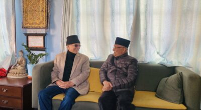 काठमाडौँ, १८ पुस । नेकपा एमालेका अध्यक्ष केपी शर्मा ओली र नेपाल समाजवादी पार्टी (नेसपा) का अध्यक्ष डा.बाबुराम भट्टराईबीभ भेटवार्ता भएको छ । ओली र भट्टराईबीच सोमवार ओली निवास बालकोटमा