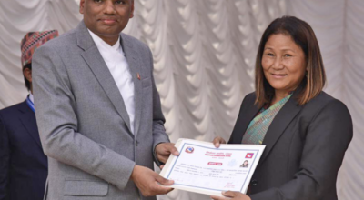 काठमाडौँ, ३ पुस । निर्वाचन आयोगले प्रतिनिधिसभाको समानुपातिकतर्फ नवनिर्वाचित सांसदलाई निर्वाचित भएको प्रणापत्र प्रदान गरेको छ । निर्वाचन आयोगमा आज आयोजित कार्यक्रममा समानुपातिक निर्वाचन प्रणालीतर्फका मुख्य निर्वाचन अधिकृत एवं आयोगका