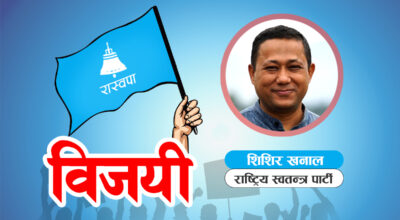 काठमाडौँ, ७ मंसिर । काठमाडौँ-६ मा राष्ट्रिय स्वतन्त्र पार्टीका उम्मेदवार शिशिर खनाल विजयी भएका छन् । उनले नेकपा एमालेका उम्मेदवार सर्वेन्द्र खनाललाई ५ हजार २९३ मतले पछि पार्दै विजयी भएका