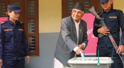 दमौली, ४ मङ्सिर । नेपाली कांग्रेसका वरिष्ठ नेता रामचन्द्र पौडेलले व्यास नगरपालिका–२ स्थित सत्यवती मावि (ख) मतदान केन्द्रबाट मतदान गरेका छन् । तनहुँ क्षेत्र नम्बर १ का प्रतिनिधिसभा सदस्य उम्मेदवार