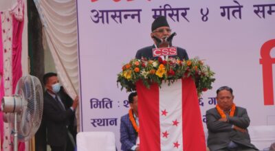 कर्णाली, २७ कात्तिक । नेकपा एमालेका अध्यक्ष केपी शर्मा ओलीले आज कर्णाली प्रदेशका तीन वटा जिल्लाका आमसभालाई आज सम्बोधन गर्दैछन् । शनिबार सुदूरपश्चिम प्रदेशको डोटी र धनगढीका आमसभालाई सम्बोधन गरेका