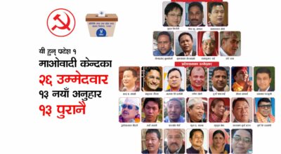 विराटनगर, २४ असोज । प्रदेश १ का २८ प्रतिनिधिसभा र ५६ प्रदेशसभा निर्वाचन क्षेत्रमा नेकपा माओवादी केन्द्रले गठबन्धनबाट २६ जना उम्मेदवार पाएको छ । माओवादी केन्द्रबाट प्रतिनिधिसभामा ७ र प्रदेशसभाका