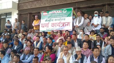 काठमाडौँ, १२ असोज । नेपाली कांग्रेसको केन्द्रीय कार्यालय सानेपामा डा.शेखर कोइराला समूहले धर्ना दिएको छ । बुधबार दिउँसो १ बजेदेखि कोइराला समूहका नेता कार्यकर्ता धर्नामा बसेका छन् । सभापति शेरबहादुर