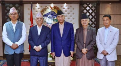 फाइल तस्बिर काठमाडौँ, ७ भदौ । सत्तारूढ गठबन्धनमा आबद्ध दलका नेताहरू प्रदेश सभा र प्रतिनिधि सभा चुनावको सिट बाँडफाँडका लागि ‘वान टु वान’ वार्ता गर्न सहमत भएका छन् । कार्यदल