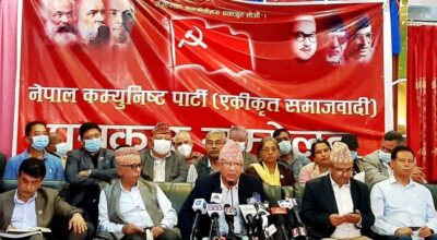 काठमाडौँ, ११ असार । नेकपा (एकीकृत समाजवादी)का अध्यक्ष माधवकुमार नेपालले तत्कालीन नेपाल कम्युनिष्ट पार्टी (नेकपा)का ‘दश भाइ’लाई नसाबाट बाहिर आउन सुझाव दिएका छन् । पार्टी केन्द्रीय कमिटी बैठकलाई संबोधन गर्दै
