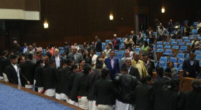 काठमाडौँ, २ चैत । प्रमुख प्रतिपक्ष दल नेपाली काँग्रेसले संसद्को बेल घेराउ गरेको छ । शुक्रबारको प्रतिनिधि सभाको दोस्रो बैठकमा सभामुख देवराज घिमिरेले उपप्रधानमन्त्री एवं गृहमन्त्री रवि लामिछानेलाई राजनीतिक दलसम्बन्धी