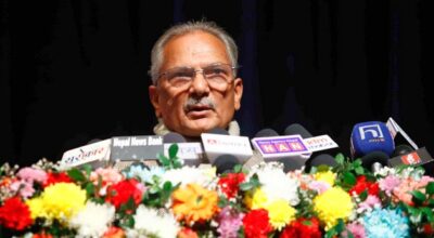 काठमाडौँ, २३ फागुन । पूर्वप्रधानमन्त्री एवं नेपाल समाजवादी पार्टीका अध्यक्ष डा.बाबुराम भट्टराईले प्रधानमन्त्री एवं नेकपा (माओवादी केन्द्र)का अध्यक्ष पुष्पकमल दाहाल ‘प्रचण्ड’प्रति लक्षित गर्दै व्यवस्था जोगाउने जिम्मेवारी लिएकाहरूबाटै अहिलेको व्यवस्थामाथि संकट