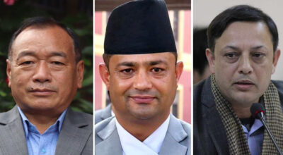 काठमाडौँ, २१ फागुन । नवनियुक्त तीन जना मन्त्रीले पद तथा गोपनीयताको सपथ लिएका छन् । नेकपा माओवादी केन्द्रबाट हितबहादुर तामाङ, नेकपा एमालेबाट पदम गिरी र राष्ट्रिय स्वतन्त्र पार्टीबाट डीपी अर्यालले