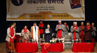 काठमाडौँ, १६ माघ । पूर्वराष्ट्रप्रति विद्यादेवी भण्डारीले ‘संसद्मा केपी शर्मा ओली’ ग्रन्थ लोकार्पण गरेकी छन् । समान पहुँच नेपाल र सभ्यता अन्वेषण केन्द्रको आयोजनामा आज भएको कार्यक्रममा पूर्वराष्ट्रपति भण्डारीले नेकपा