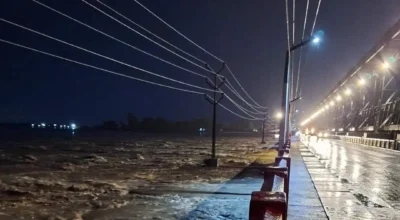 सुनसरी, १३ असोज । सप्तकोशी नदीमा पानीको बहाव ५६ वर्षयताकै उच्च रहेको छ । आज बिहान ३ः०० बजे गरेको मापनअनुसार कोशी ब्यारेज भएर सप्तकोशीको बहाव प्रतिसेकेन्ड ६ लाख ४३ हजार