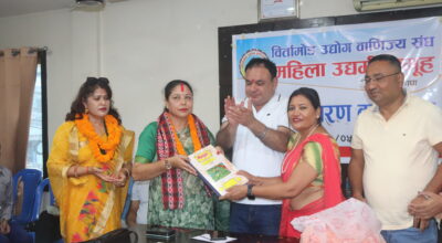झापा, भदौ १० । महिला उद्यमी संघ बिर्तामोडको अध्यक्षमा राधिका चुडाल हुँमागाई चयान हुनु भएको छ । बिर्तामोड उद्योग वाणिज्य संघ अन्तरगत रहेको महिला उद्यमी संघमा हुमागाई सर्बसम्वत चयन हुभएको