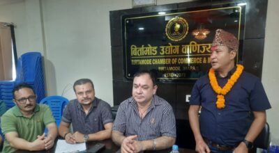 झापा, १२ साउन । बिर्तामोड उद्योग वाणिज्य संघको विशिष्ठ सदस्यमा मनोनित निर्मल भट्टराईले सपथ लिनुभएको छ । शनिवार बिर्तामोड उद्योग वाणिज्य संघको सभाहलमा आयोजित कार्यक्रमकाबीच भट्टराईले सपथ लिनुभएको हो। उहालाई