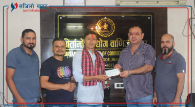 झापा, असार ११ । बिर्तामोड उद्योग बाणिज्य संघले स्थापना गरेको ‘ब्यवसयिक राहत कोष’का लागि व्यवसायी दिनेश श्रेष्ठले एघार हजार एक सय ११ रुपैयाँ प्रदान गर्नु भएको छ । बिर्तामोड उद्योग