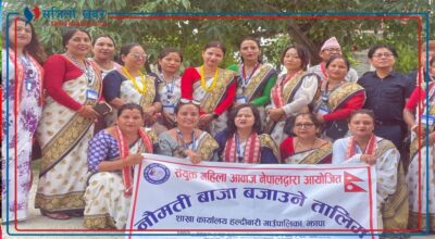 झापा, २९ जेठ । हल्दीबारी गाउँपालिकामा महिलाहरुलाई लक्षित गरेर १५ दिन अघि सुरु गरिएको नौमती बाजा बजाउने तालिम आज एक समारोहका विच समापन गरिएको छ। संयुक्त महिला आवाज नेपाल संस्था