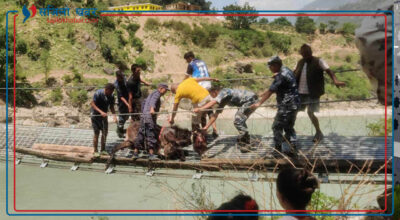 अछाम , २७ जेठ । अछामको पन्चदेवल विनायक नगरपालिका ९ मा झोलुङ्गे पुल चुँडिँदा १५ वटा खच्चड फसेका छन् । अछाम र दैलेख जोड्ने कर्णाली नदीमाथिको झोलुङ्गे पुलमा फसेका खच्चडको
