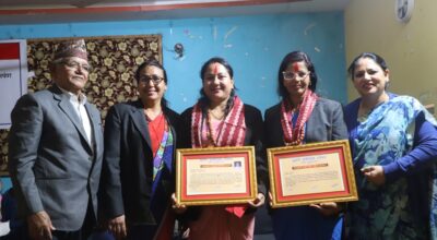 झापा, २० फागुन । काँकरभिट्टामा आयोजित एक कार्यक्रमका बीच नारी सञ्चार गृह झापा र एकव्यक्तिलाई सम्मान तथा पुरस्कृत गरिएको छ । सुसेली साहित्य परिवारद्वारा काँकरभिट्टास्थित खानेपानीको सभाहलमा आयोजित कार्यक्रममा झापाका
