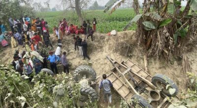 सर्लाही, ९ फागुन । सर्लाहीको बरहथवा नगरपालिका-१५ प्रिपाभित्तास्थित बागमती नहरमा बुधबार ट्याक्टर दुर्घटना हुँदा दुई जनाको मृत्यु भएको छ भने ६ जना घाइते भएका छन् । रौतहटको गढीमाई नगरपालिकाबाट सर्लाहीको