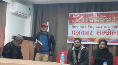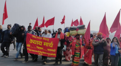 झापा, १५ माघ । मिटर ब्याज पीडितहरुले सहिद दिवसको अवसर पारेर पूर्वी नाका काँकरभिट्टाबाट न्याय मार्च (पैदल यात्रा) गर्ने भएका छन् । मिटर ब्याज तथा ठगीविरुद्ध किसान-मजदुर संघर्ष समितिको आयोजनामा