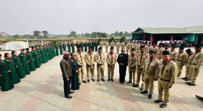 झापा, २४ पुष । हल्दीबारी गाउँपालिकाको आयोजनामा पौष १६ देखि २१ गतेसम्म सञ्चालन गरिएको स्काउट आधारभूत तालिम (६२० औं बी.टी.सी. र ४५९ औं पी.टी.सी.) सफलतापूर्वक सम्पन्न भएको छ। तालिमको अन्तिम