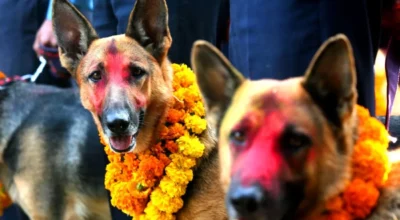 काठमाडौं, ३ कार्तिक । तिहारको तेस्रो दिन आज घरघरमा कुकुरलाई पूजा गरी मीठा खानेकुरा दिई कुकुर तिहार मनाइँदै छ । कुकुर तिहार यमपञ्चक अर्थात् दीपावली पर्वको दोस्रो दिन पर्ने भए