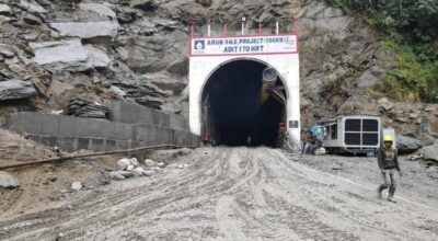 सङ्खुवासभा, ३ असोज । सङ्खुवासभामा निर्माणाधीन नौ सय मेगावाट क्षमताको अरुण तेस्रो जलविद्युत् परियोजनाको विद्युत्गृहको काम ठप्प छ । रुण तेस्रो प्रवेशमार्गको छ्याङकुटी-दिदिङ पुखुवा सडकखण्डको मुआब्जा माग गर्दै स्थानीयले झण्डै