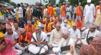 झापा, ९ भाद्र । गौहत्याको विरोधमा धरान हिँडेकाहरुलाई झापा प्रशासनले चारपानेमा रोकेको छ । बस रोकिएपछि हिन्दु धर्मावलम्बीहरुले सडकमै विरोध जनाइरहेका छन् । शान्तिपूर्ण आन्दोलनमा हिडेको समूहलाई प्रहरीले रोकेपछि प्रहरी