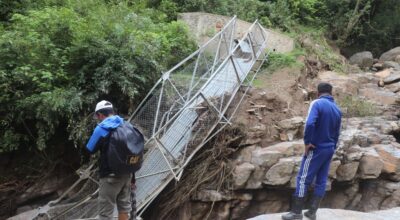 भोजपुर, ६ भदौ । टेम्केमैयुङ गाउँपालिका–९ स्थित राउतेखोलाको झोलुङ्गे पुल बाढीले बगाएपछि स्थानीयलाई समस्या भएको छ । एक गाउँबाट अर्को गाउँ जोड्ने पुल बाढीले बगाएसँगै स्थानीयको जनजीवन कष्टकर बनेको हो