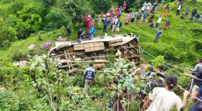 रोल्पा, २३ साउन । रोल्पाको बागमारादेखि दाङको घोराहीतर्फ जाँदै गरेको बस रोल्पाको त्रिवेणी गाउँपालिका-७ गैरीगाउँस्थित रिची गाउँमा दुर्घटना हुँदा चार जनाको मृत्यु भएको छ । १५ जना घाइते छन् ।