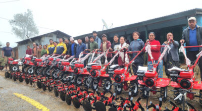 भोजपुर, १९ असार । भोजपुरको पूर्वी पौवादुङमा गाउँपालिकाले किसानलाई हाते ट्र्याक्टरलगायतका सामग्री वितरण सुरु गरेको छ । गरिबी निवारण लद्युउद्यम कार्यक्रमअन्तर्गत किसानलाई खेती गर्न सहज होस् भन्ने उद्देश्यले सामग्रीहरू वितरण