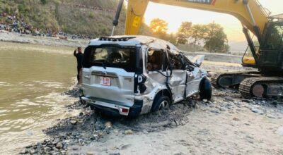 सिन्धुली, २३ जेठ । गएको शुक्रवार सुनकोशी नदीमा खसेको सीटीईभीटीका कर्मचारी चढेको जीप आज भेटिएको छ । पाँच दिनसम्मको खोजीपछि आज जीप र त्यसमा रहेका दुई जनाको शव भेटिएको जिल्ला