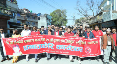 काठमाडौँ, १३ जेठ । २१औँ कृष्ण सेन ‘इच्छुक’ स्मृति दिवसका अवसरमा प्रेस सेन्टर नेपालले आज यहाँ प्रभातफेरि आयोजना गरेको छ । १९औँ केन्द्रीय साधारणसभाको अवसरमा सेन्टरले कार्यक्रमस्थल शङ्खरापुर नगरपालिकाको साँखुमा