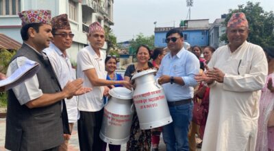 बिर्तामोड, १४ वैशाख । बिर्तामोड नगरपालिकाले बिहिवार दुग्ध किसानलाई चिलिङ्ग भ्याट, आल्मुनियमको मिल्क क्यान र दाना पिस्ने मेशिन हस्तान्तरण गरेको छ । नगरपालिकाको पशुपंछि तथा मत्स्य विकास शाखाको वार्षिक स्विकृत