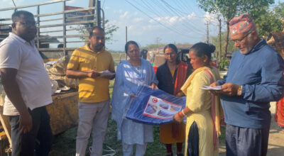 बिर्तामोड, २० चैत । बिर्तामोड नगरपालिकाले वडा नम्बर २ मा ८० थान त्रिपाल वितरण गरेको छ । शुक्रवार साँझ आएको हावाहुरी सहितको असिना पानीले घरको छाना उडाएर विचल्लीमा परेका ७०