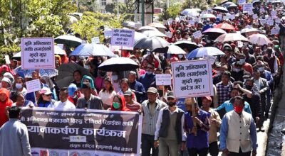 काठमाडौँ, १३ चैत । संयुक्त राष्ट्रिय सुकुम्वासी मोर्चा नेपालले काठमाडौँ महानगरपालिकाका मेयर बालेन्द्र साहविरुद्ध प्रदर्शन गरेको छ । संविधान र कानुन विपरीत सुकुम्वासीहरूलाई उठिबास लगाउने कामको नेतृत्व लिएको भन्दै उनीहरूले