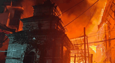काठमाडौं, १३ असोज । काठमाडौंको काष्ठमण्डप नजिकैका घरमा आगलागी भएको छ । बिहानपख ३ बजेदेखि आगलागी सुरु भएको स्थानीयले बताएका छन् । उनीहरुका अनुसार तीनवटा घर र मन्दिर आगोको चपेटामा