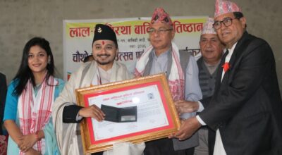 मेचीनगर, १७ माघ । लाल-भागिरथा बानियाँ प्रतिष्ठान धाइजनले ‘मेमोरी किङ’ अर्पण शर्मासहित तीन जनालाई सम्मान गरेको छ । मेचीनगर-११ स्थित जालपा सामुदायिक भवनमा आयोजना गरिएको चौथो बार्षिक उत्सव एवम् सम्मान