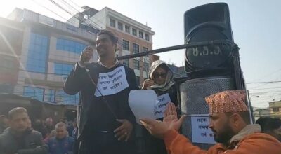 काठमाडौँ, १५ माघ । उपत्यकाव्यापी सडक विस्तार पीडित सङ्घर्ष समितिले काठमाडौँ महानगरपालिकाका मेयर बालेन्द्र शाहविरुद्ध प्रदर्शन गरेको छ । मेयर शाहले गैरकानुनी ढङ्गले महानगरपालिकाभित्र डोजर आतङ्क फैलाएकाे भन्दै उपत्यकाव्यापी सडक