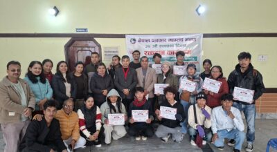 झापा, १७ पुष । बिर्तामोड नगरपालिका–३ स्थित शिवम् मिठाइ पसलमा नक्कली नागरिकतासहित एक युवक पक्राउ परेका छन्। खाजा खान आएका शिवसताक्षी नगरपालिका–११ निवासी २३ वर्षीय पप्पु ठाकुरलाई कागजात जाँच गर्ने
