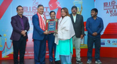 काठमाडौँ, २९ असार । ‘विराट म्युजिक एण्ड फिल्म अवार्ड’ को दोस्रो संस्करणमा पत्रकार गीता अधिकारीलाई पुरस्कार एवम् सम्मान गरिएको छ । काठमाडौंमा आयोजीत अवार्डको विशेष समारोहमा पत्रकार अधिकारीलाई कार्यक्रमका प्रमुख
