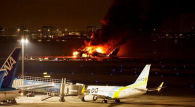 जापान, १७ पुस । जापान एअरलाइन्सको यात्रुवाहक विमान टोकियोको हानेदा विमानस्थलमा अर्को जहाजसँग ठोकिएर आगलागी भएको छ । होक्काइडोबाट आएको विमान अवतरण गर्ने क्रममा जापानी तटरक्षक विमानसँग ठोकिनेबित्तिकै ठूलो आगलागी
