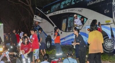 थाइल्यान्ड, १९ मंसिर । थाइल्यान्डमा बस दुर्घटना हुँदा १४ जनाको मृत्यु भएको छ भने २५ जना घाइते भएका छन् । दक्षिण थाइल्यान्डको प्राचुआप खिरी खान प्रान्तमा यात्रुवाहक बस सडकबाट चिप्लिएर