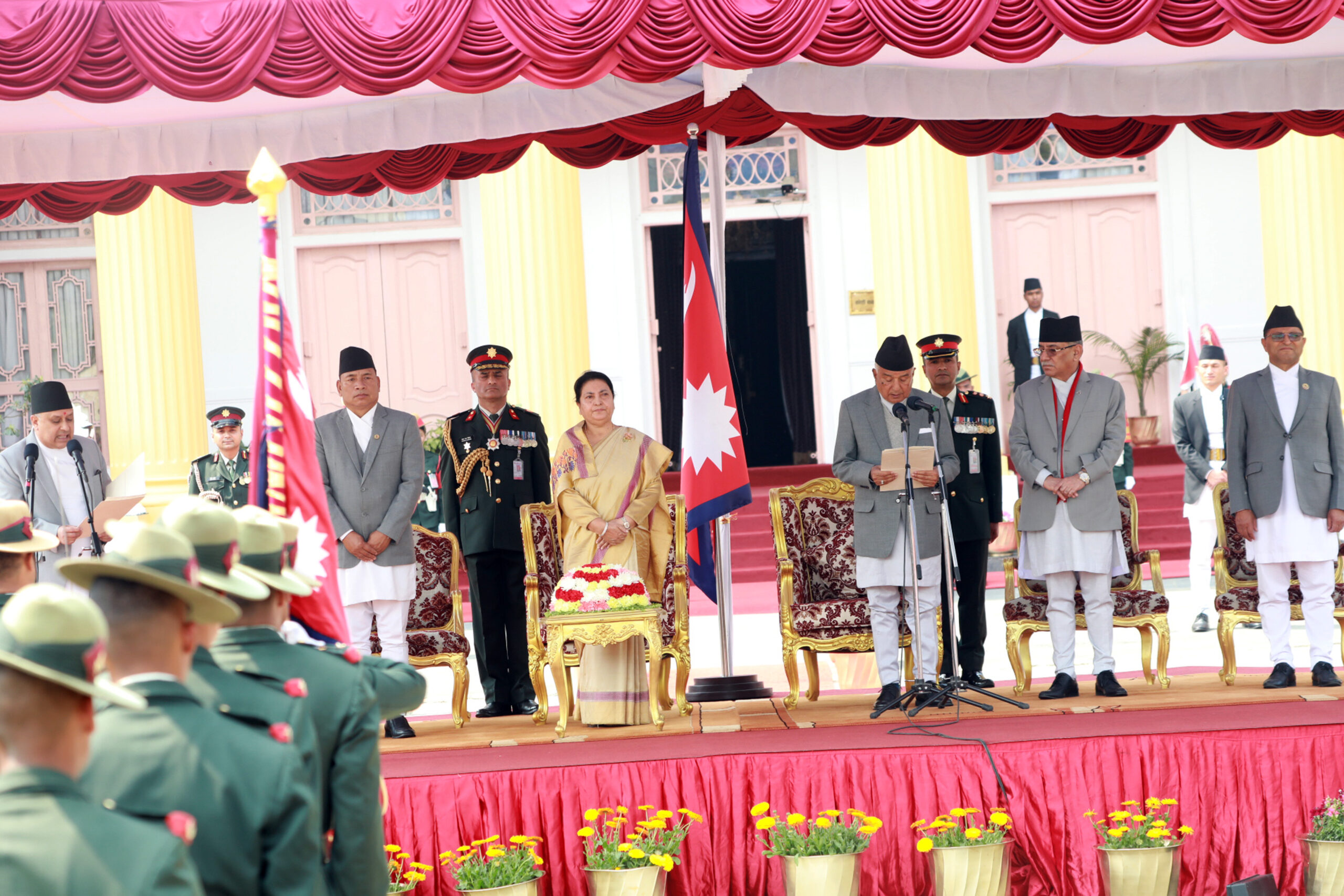 Outgoing President Bidya Devi Bhandari, Vice President Nanda Bahadur Pun, Prime Minister Pushpa Kamal Dahal ‘Prachanda’, National Assembly Chair Ganesh Prasad Timilsina, former President Dr Ram Baran Yadav, former Prime Ministers and former Chairman of the Council of Ministers were present on the occasion.