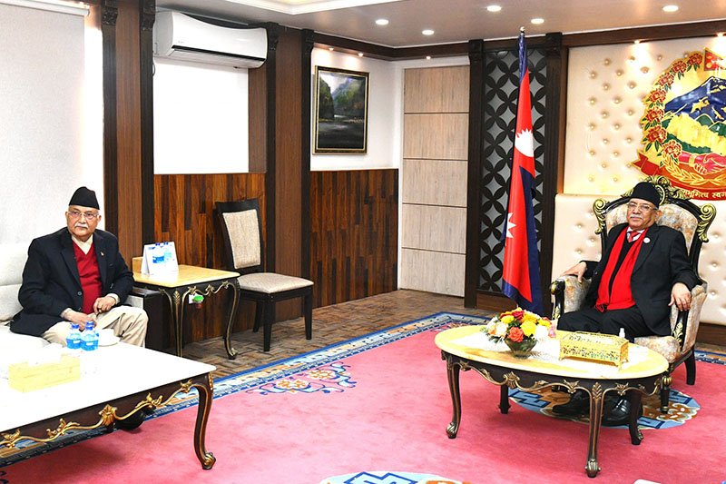 Kathmandu, 26 Jan : Prime Minister Pushpa Kamal Dahal ‘Prachanda’ and CPN (UML) Chair KP Sharma Oli held discussion on contemporary political issues.